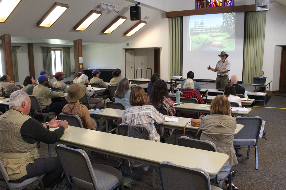 The turkeys remind us that every species of plant and animal, every landscape, rock, cloud, water drop, and weather event have captivating natural history stories to tell. Informative and useful narratives grow from research that connects all of us to our natural world. We can see why this is just one of the naturalist programs across the US. Master instructor Chris Cameron started our course by summarizing how we celebrate biodiversity with environmental literacy, scientific and social understanding, by honing our interpretive skills, and practicing collaborative conservation. We reviewed our state’s bioregions and geomorphic provinces (from page 29 in our required California Naturalist Handbook), which coincide with the physiographic regions we have explored in numerous stories on this website and in my publications. And we recognized how the California Floristic Province, a biological hotspot with its thousands of species that include a large percentage of endemics, is experiencing a biodiversity crises as increasing numbers of those unique plants and animals are threatened with extinction. We recognize how naturalists’ work has become crucial as we observe, communicate, and act to build essential links between scientists and the average person. After dinner, our first day and evening ended with my presentation that summarized some fascinating properties of water and the weather patterns and climates that rule over our plant communities, topics we have highlighted on this website and in my recent California Sky Watcher book and statewide tour.