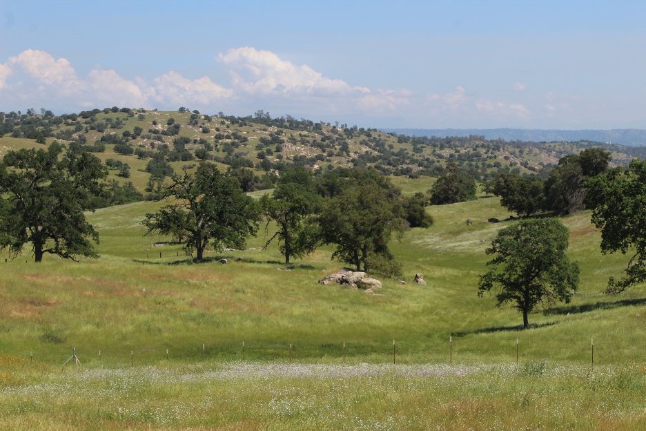 As the road gradually slopes up toward Sierra Nevada foothills, we find ourselves surrounded by open grasslands that recall the vast prairies that once dominated the Golden State’s inland valleys before the Spanish arrived. You will notice cattle grazing on pastoral rolling hills, landscapes occasionally interrupted and sliced by serpentine streams and rivers meandering from east to west, out of higher elevations and into the valley. (These lush narrow riparian strips are what remains (less than 10%) of the broad gallery forests that once extended on both sides of streams and rivers flowing out of the Sierra Nevada.) Today’s hills turn verdant green by April and erupt into rainbow displays of wildflowers such as lupine. But the grasses and flowers will soon dehydrate to the golden browns of punishing summer drought, leaving their seeds in parched soils, waiting for next winter’s rains and next spring’s renewed fantastical displays.
