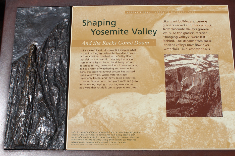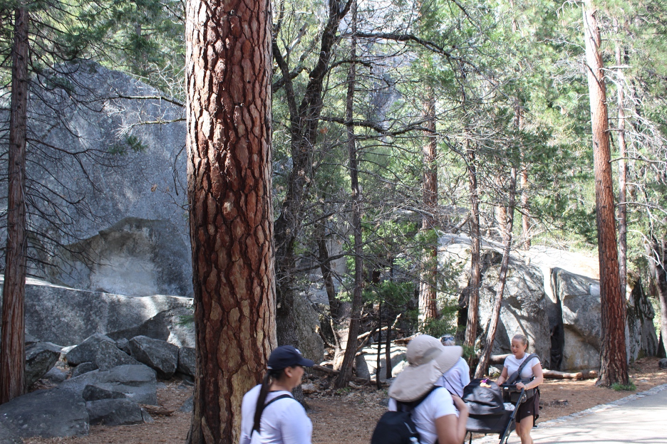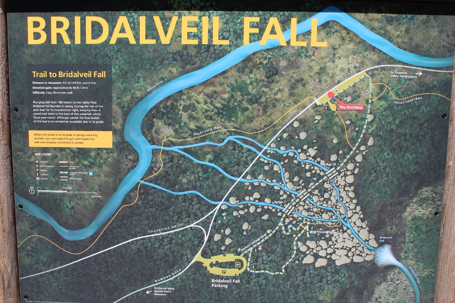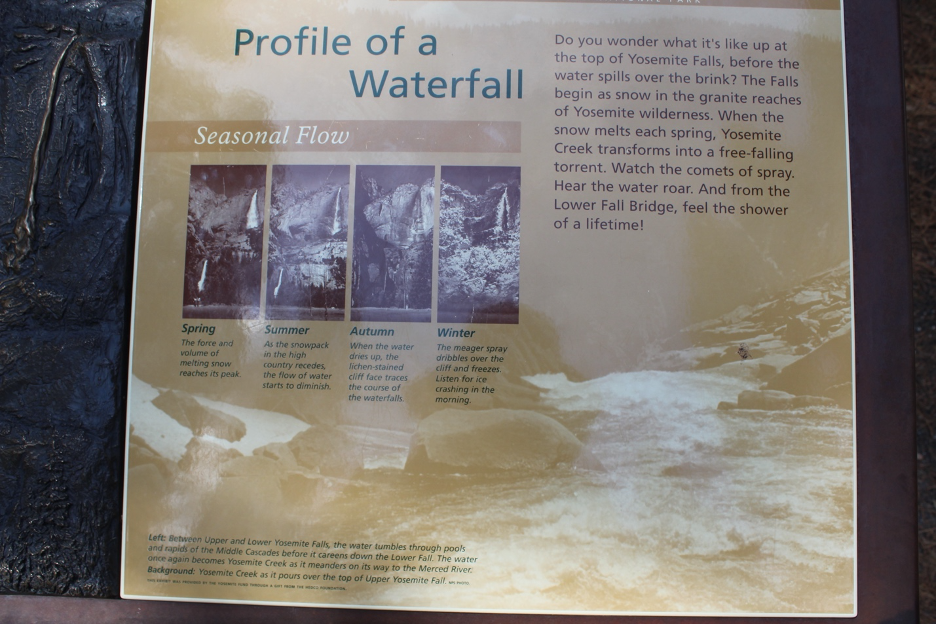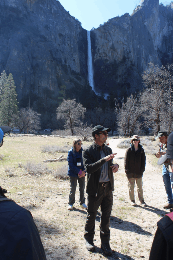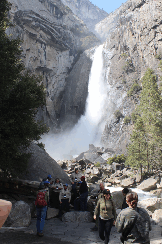Our morning is complete with a walk around the base of a roaring Bridleveil Fall. Here, we can see signs of NPS forest management and we can thank the Yosemite Conservancy for providing access and trails to watch the mist swirling in giant eddies around the fall.