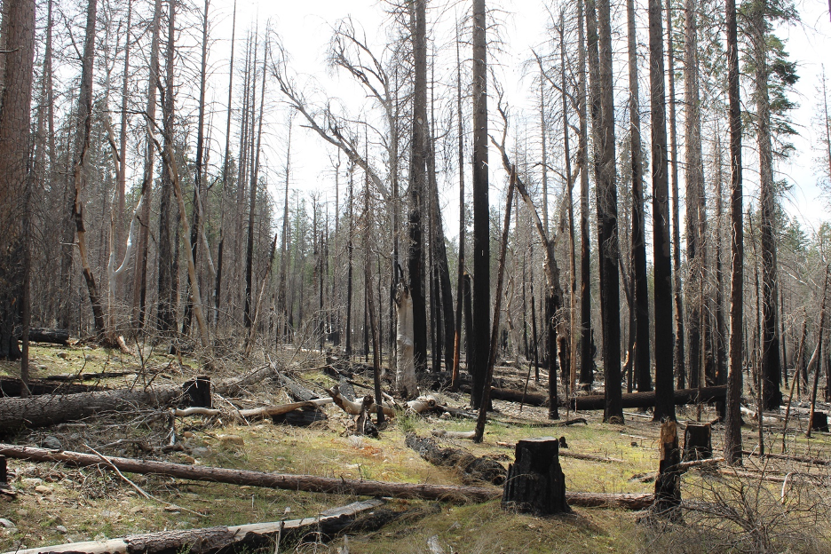 Upper Montane: Cooler, wetter and denser forests with largest diameter trees in the Sierra Nevada. White fir, Douglas fir, sugar pine (with the longest cones), sequoias, Jeffrey Pine (bark cracks smell like vanilla or butterscotch and cones are less prickly than ponderosa), huckleberry, oak, dogwood, bush chinquapin, pinemat manzanita, red fir, and lodgepole pine at higher elevations.