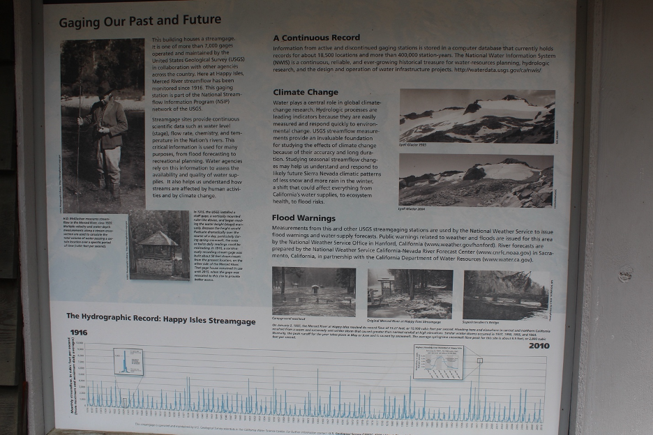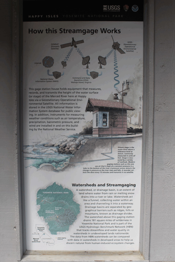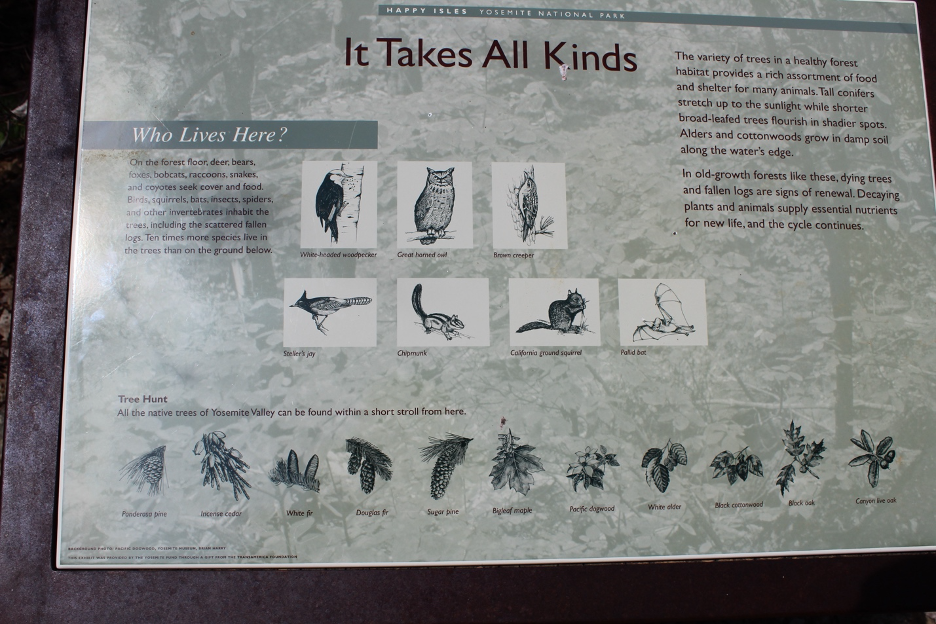 This popular and often overcrowded trail leads us to the Happy Isles Visitors Center, open today, thanks to Yosemite Conservancy volunteers. The trail eventually climbs up to the accessible hanging valleys and switchbacks at Vernal Fall and then Nevada Fall. It’s also the infamous trail I’ve taken to the top of Half Dome. That exhausting but exhilarating longer, round trip strenuous route requires a full day from early morning to sunset, and a lot of energy. The trail to the top also becomes untraversable when there is ice and snow and is to be avoided during periods of summer afternoon thunderstorms. In recent years, the final leg up the “gentler” face of Half Dome (with the chained steps) requires a permit. Hikers, surprised by pop-up thunderstorms, have been slipped and fallen to their deaths during desperate attempts to scamper down the steps to safety. Here’s another reason why a savvy naturalist must also be experienced and skilled at weather observation and interpretation. The crowded Yosemite shuttle will take us back into Yosemite Village for lunch.