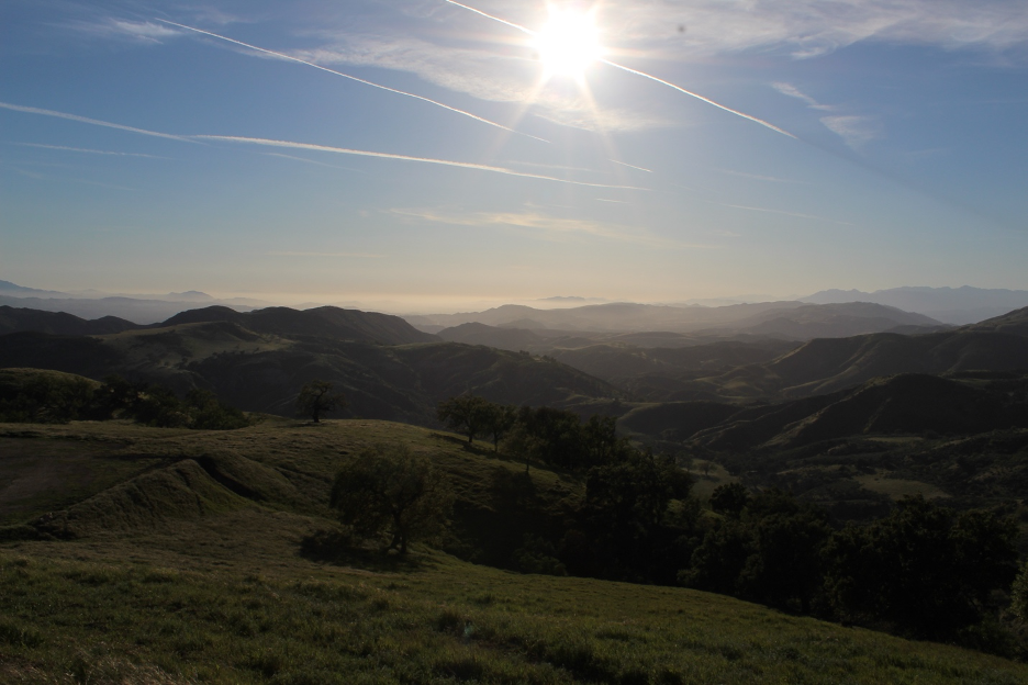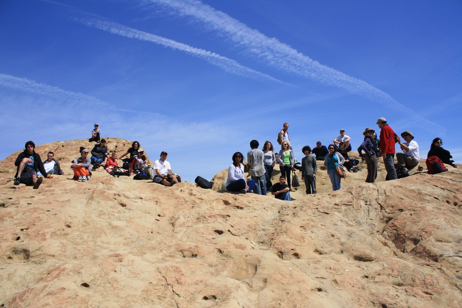 Students in my field class admire strings of contrails (more than 20,000 feet above) from the top of the Santa Monica Mountains.