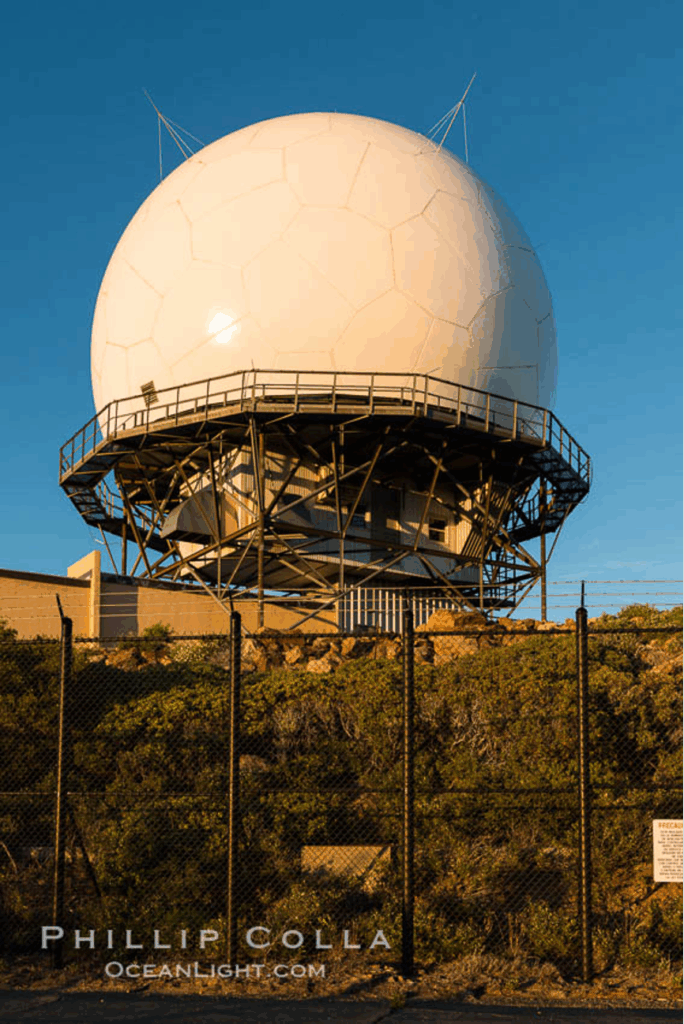 This “radome” in the Laguna Mountains protects sensitive equipment and minimizes interference. Radar technologies have become essential tools for tracking precipitation and storms.