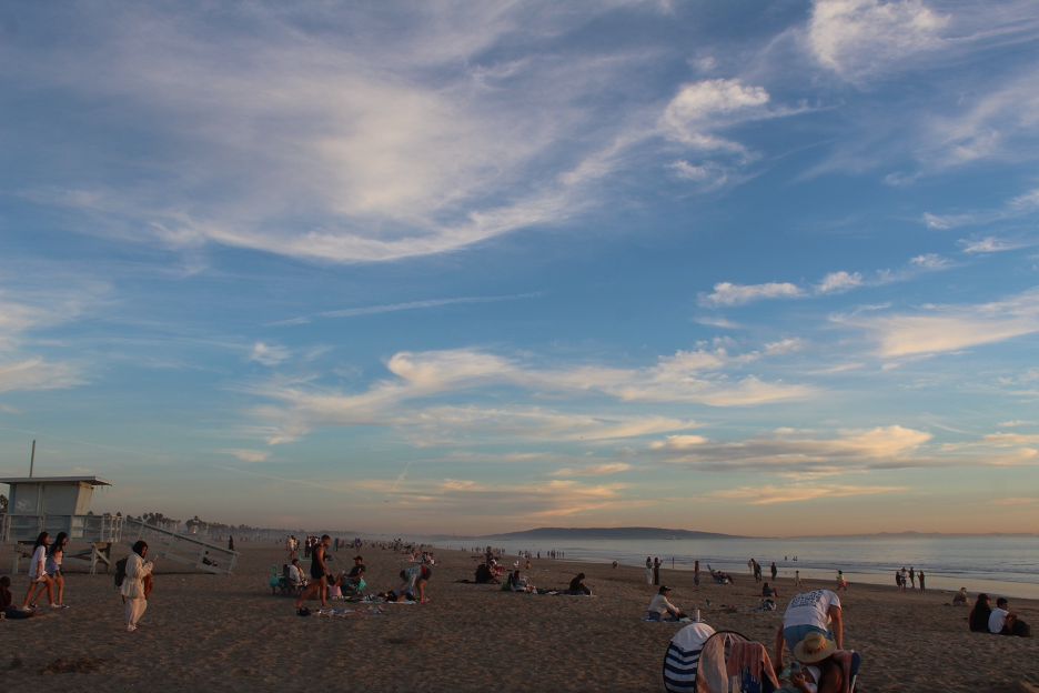 Another January, 2026 afternoon with temperatures in the 70s and 80s comes to an end across Southern California beaches. Notice the sundog to the right of the volleyball net. Sundogs sometimes form as pieces of halos when light is refracted at 22-dgree angles from the sun by horizontally-aligned ice crystals within the high cirrus clouds.